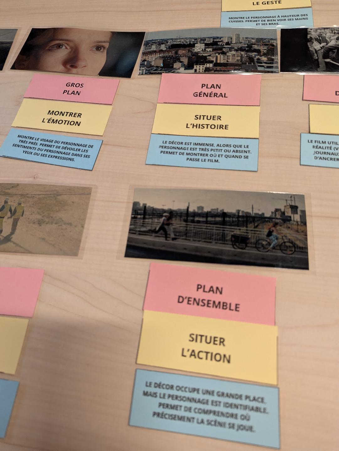 La semaine suivante, nous avons reçu un professionnel du cinéma, M. Clément Scié, pour une intervention sur le film. Les élèves ont ainsi pu discuter de la mise en scène et de la fin du film que tous n’ont pas interprété de la même manière. Ensuite, une activité ludique autour d’un jeu de cartes sur le film leur a permis de travailler le vocabulaire et la mise en scène (nom des plans, effet recherché…).